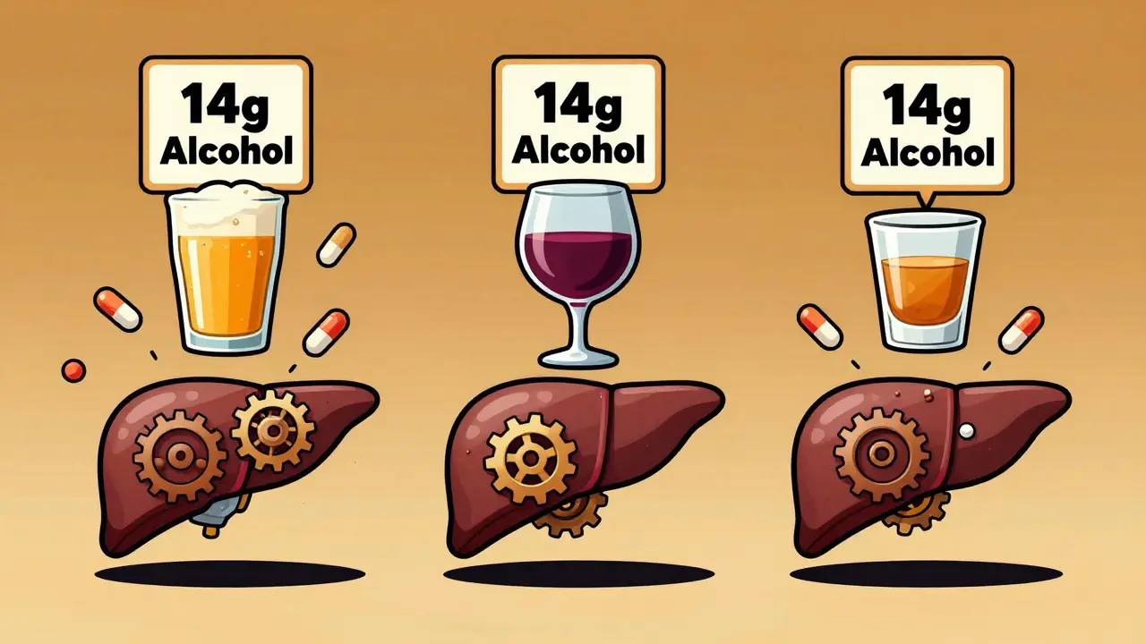 Important for medication safety: This calculator shows the total alcohol consumed. The article explains that all types of alcohol interact with medications the same way in your liver. Even one standard drink can be dangerous with certain medications.