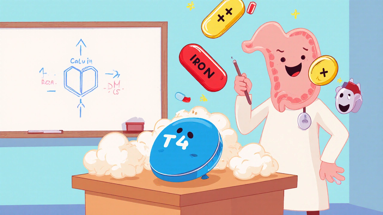 Levothyroxine is a synthetic form of the thyroid hormone T4 that most people with hypothyroidism take daily. Because it has a narrow therapeutic index, even a 10‑15% dip in absorption can push TSH out of range. Calcium and iron interfere through two main mechanisms: